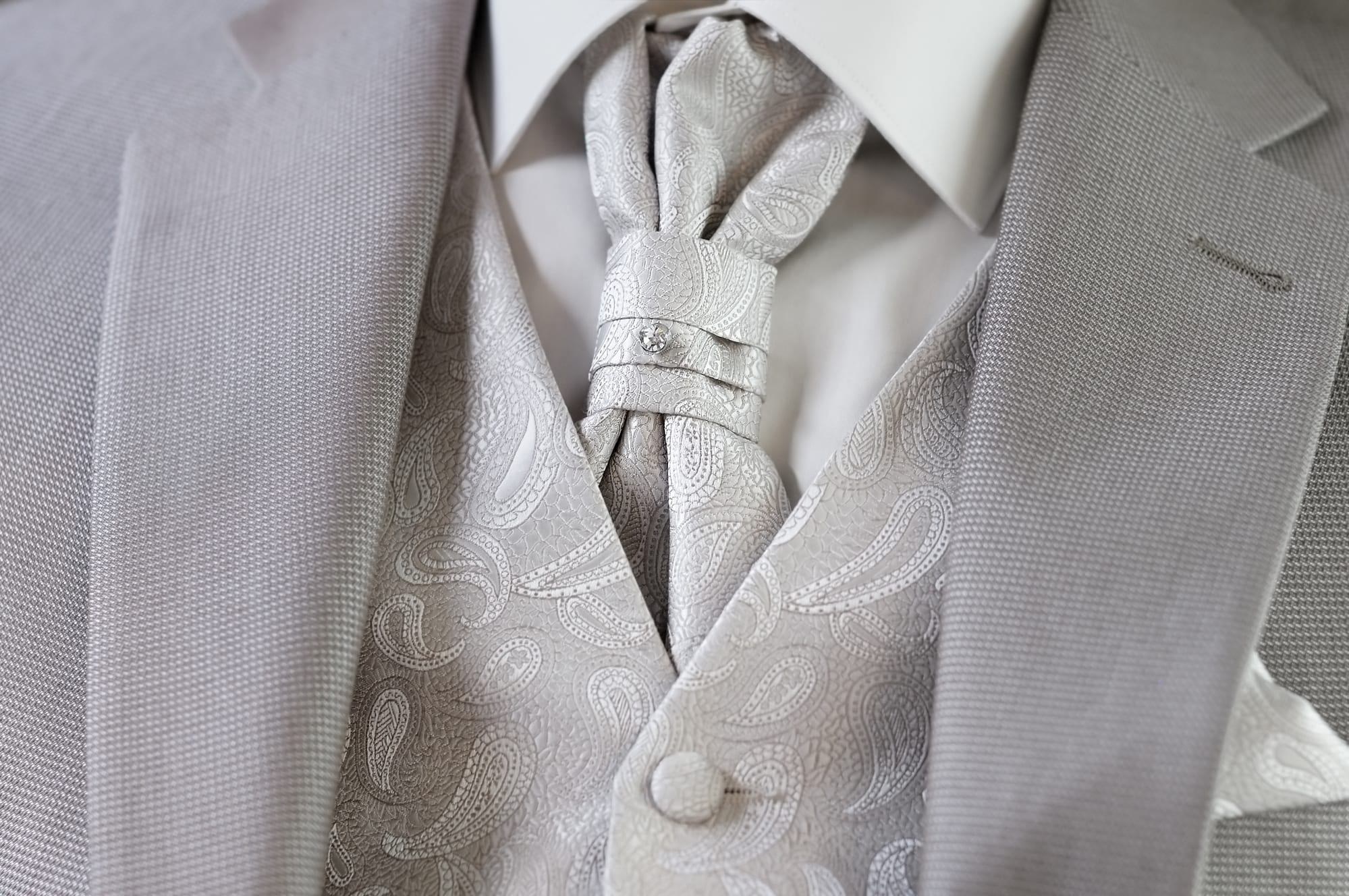 The cravat is actually the original tie from which all others evolved. The cravat is a looser neckwear style that, to the modern eye, looks like a hybrid between a tie and a silk scarf. You could wear one with your finest men’s dress shirts on very formal occasions (if you’re daring, that is). But you’re more likely to see it as part of a costume in a period film than you are at a black tie reception in real life.