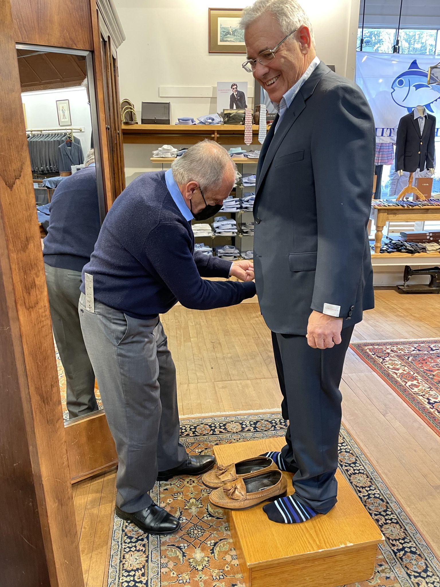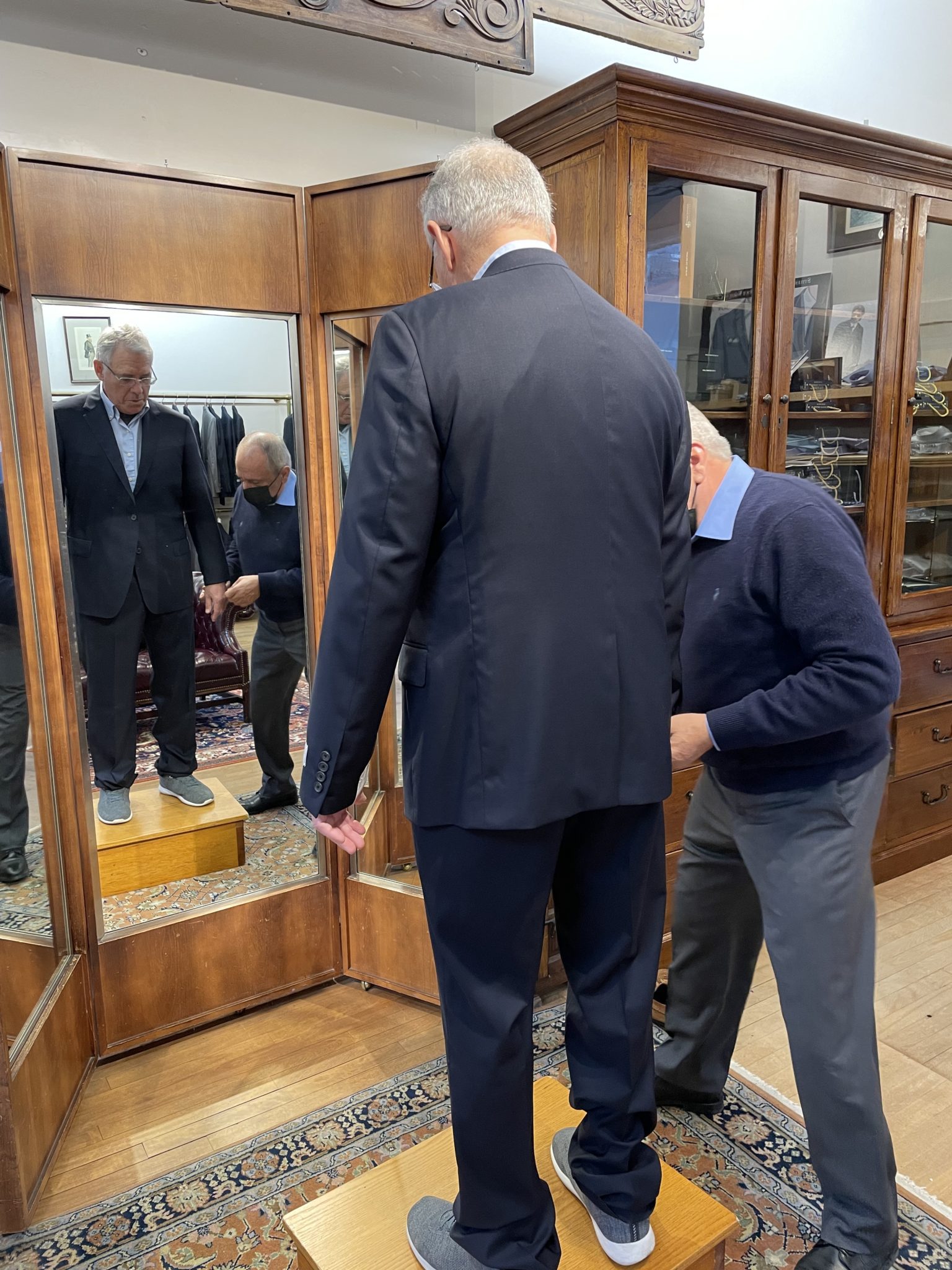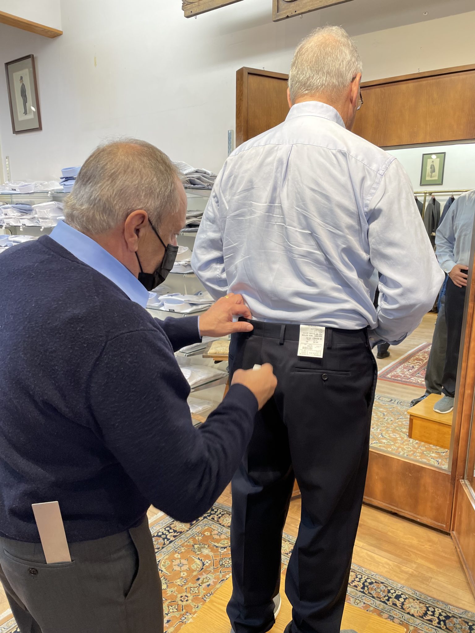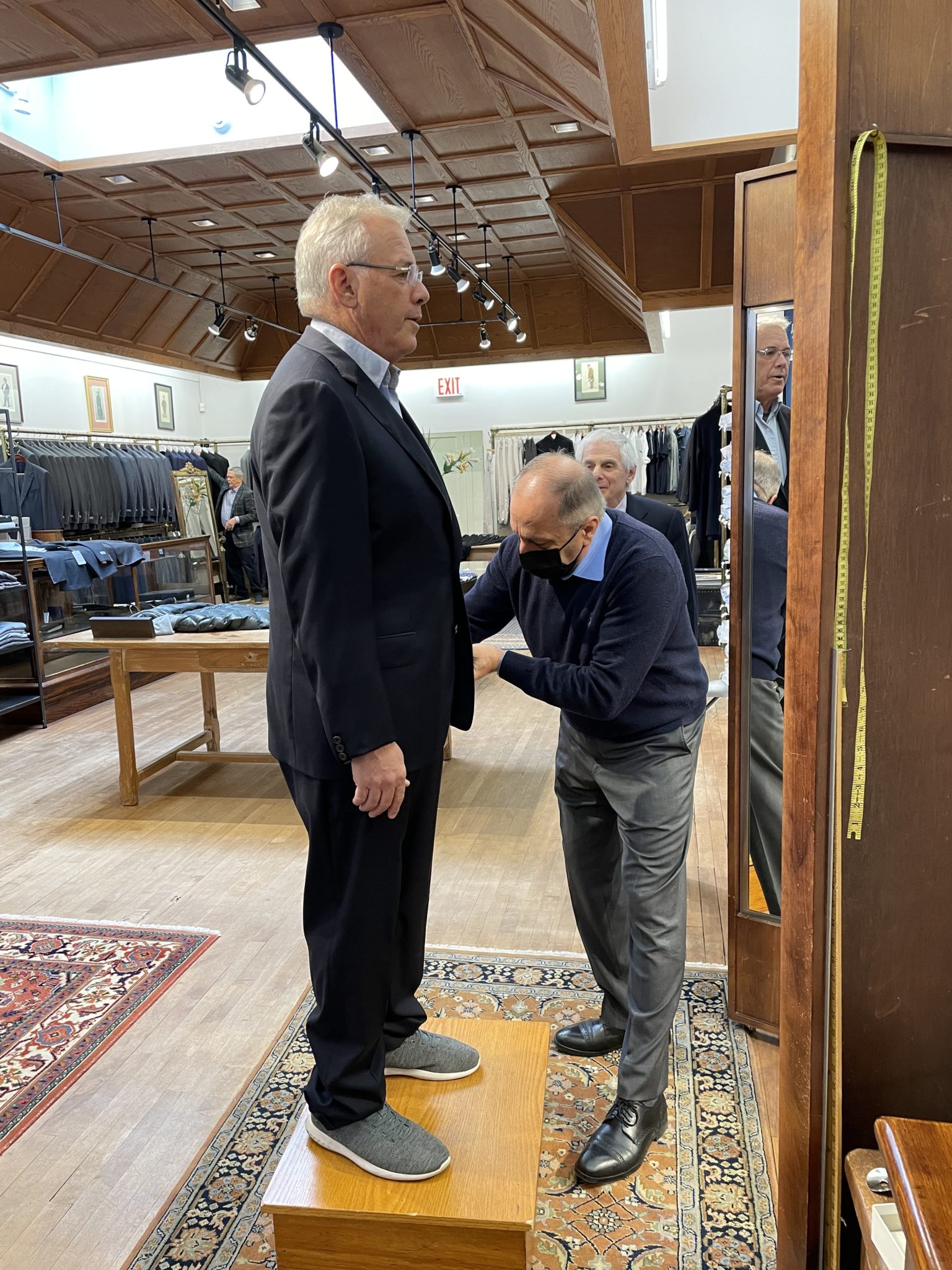 Customer came to us because his daughter and family just moved to Chappaqua. The gentleman had a big trial in a few weeks and needed some new suits but could not find what he wanted – a center vented suit jacket in a traditional cut.