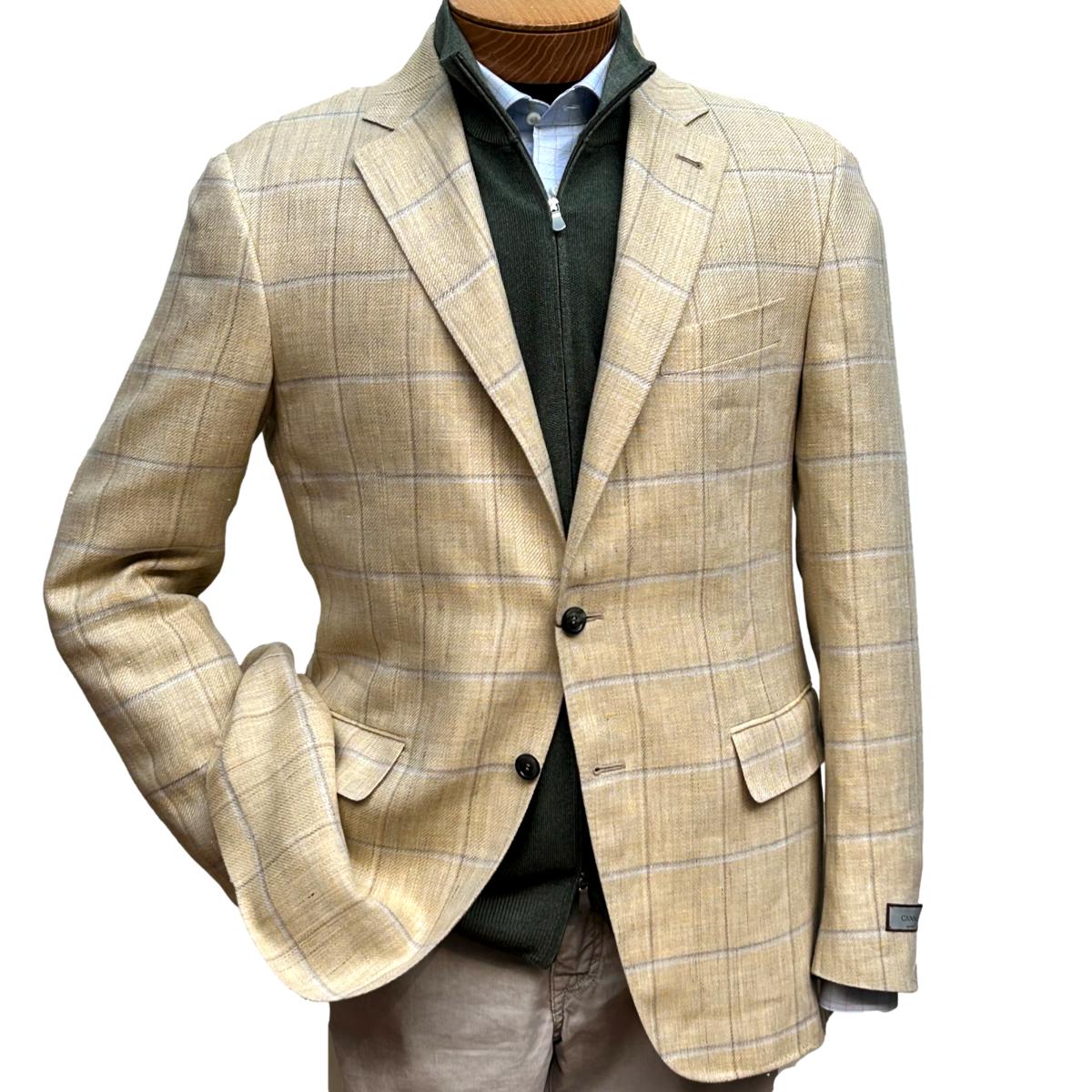 Tags: Cream Plaid, Linen and Wool, Made in Italy