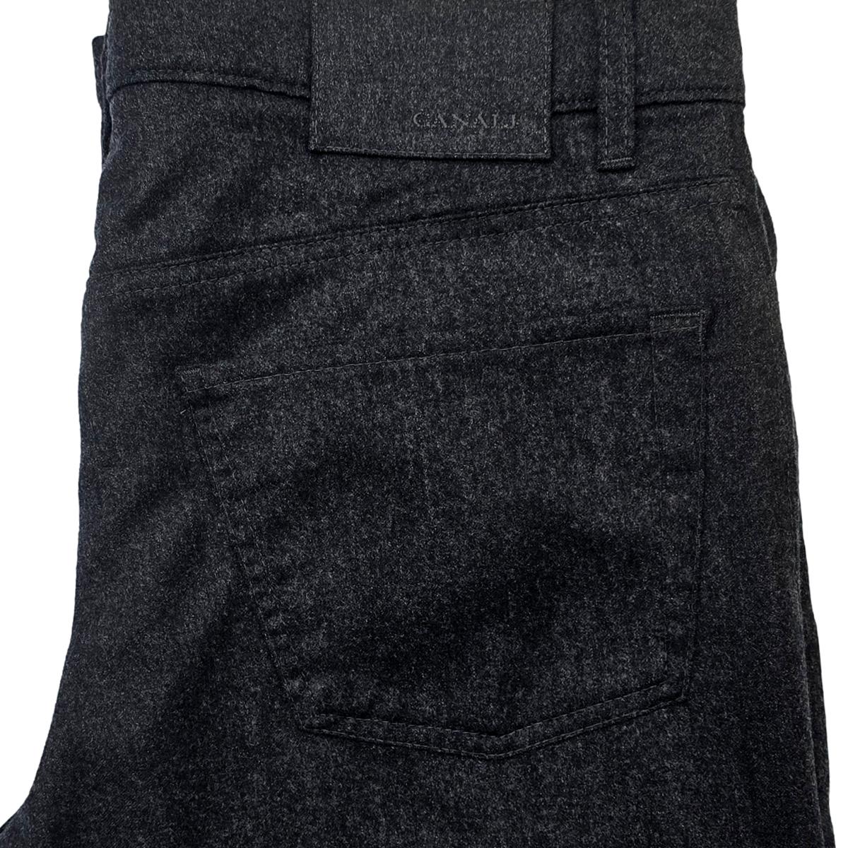 A grey flannel jean in a prewashed wool from Italy. Soft, comfortable and washable.The ultimate business casual dress jean.