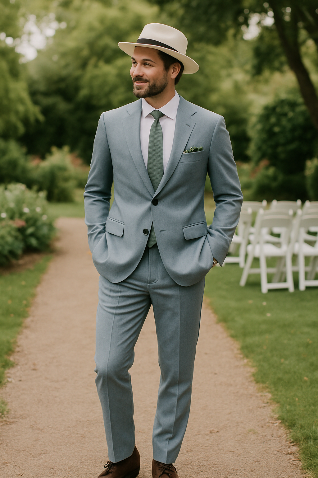 Summer wedding attire prioritizes breathable fabrics and heat management while maintaining appropriate formality. Linen, lightweight wool, cotton blends, and seersucker become your best fabric choices.