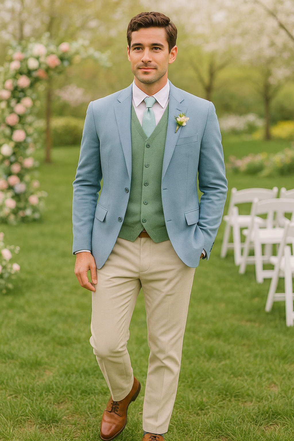 Spring weddings call for adaptable clothing that handles fluctuating temperatures while reflecting the season’s fresh energy. Light wool and cotton fabrics provide versatility for unpredictable spring weather.
