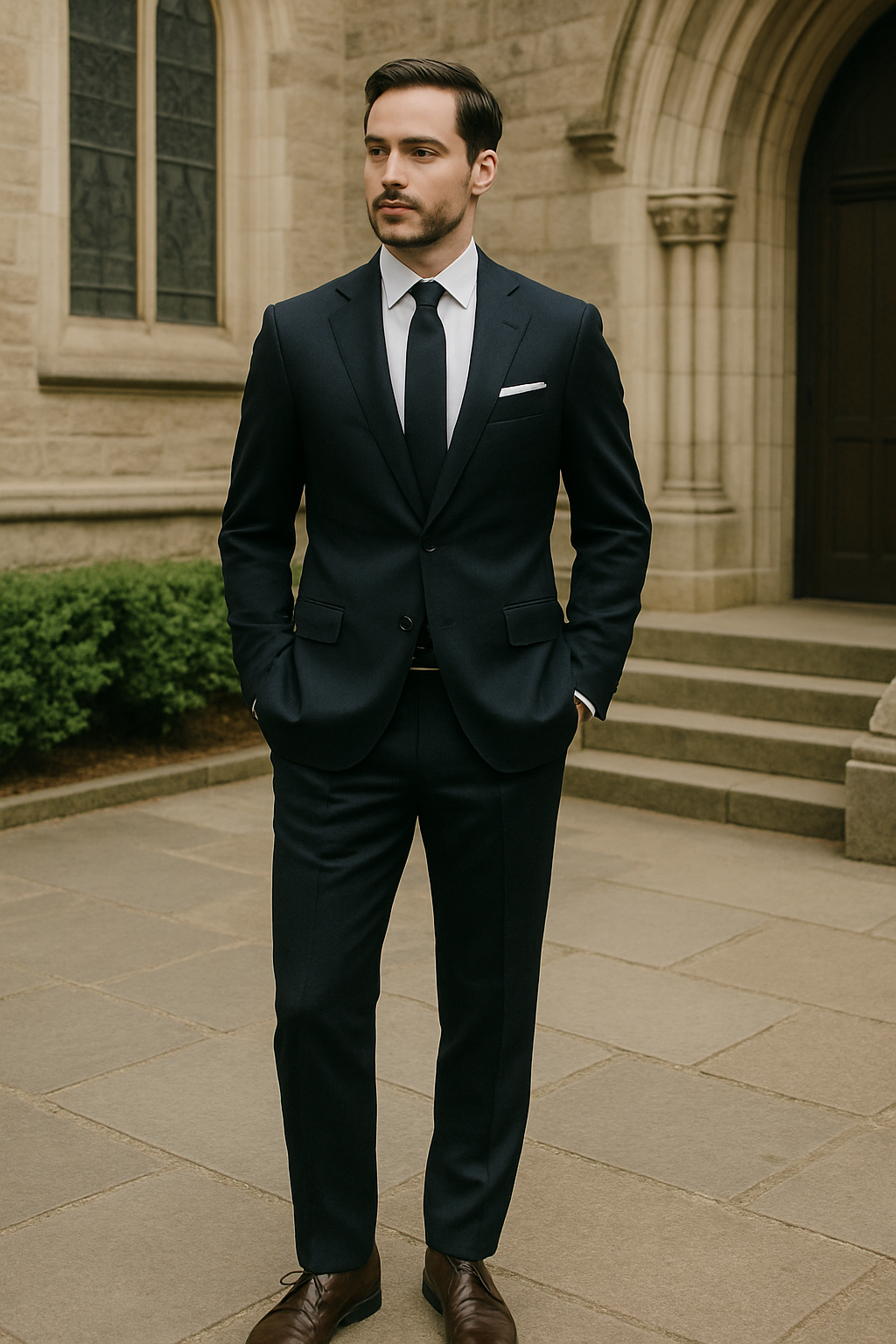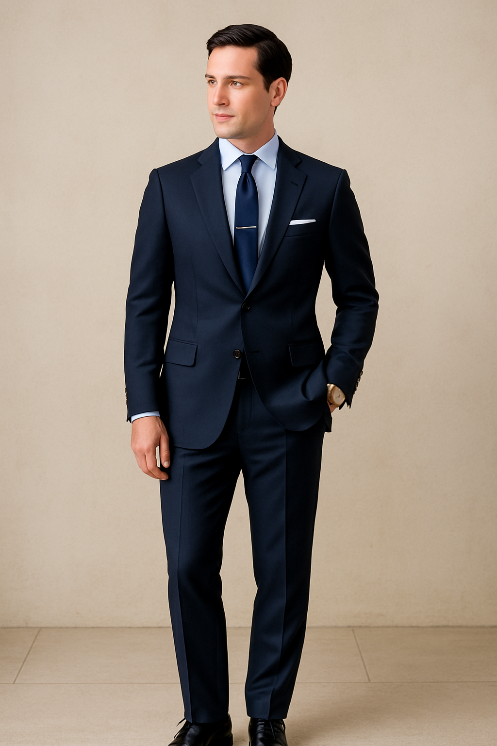 Quality accessories elevate your look: consider tie bars, cufflinks, a dress watch, and polished dark dress shoes. These details show attention to the occasion’s importance while maintaining appropriate formality levels.